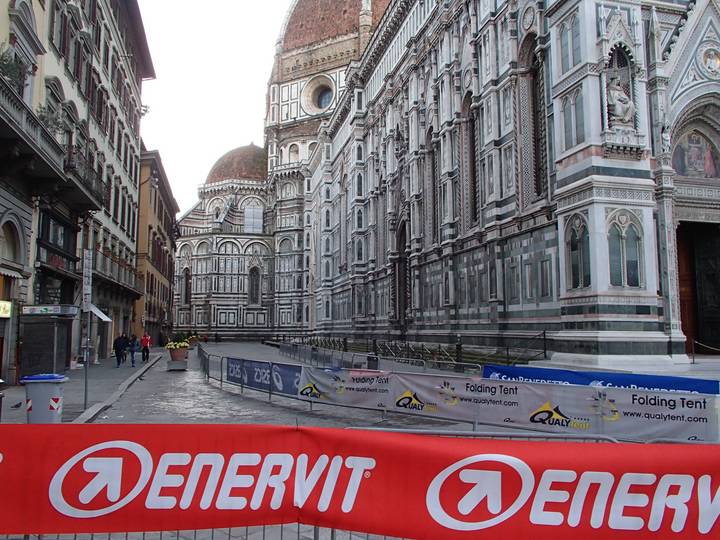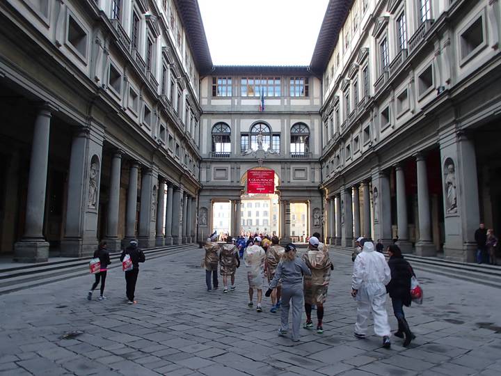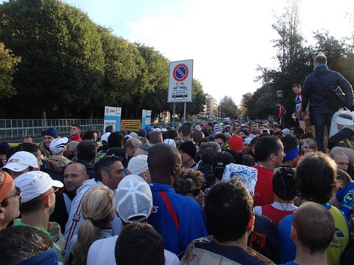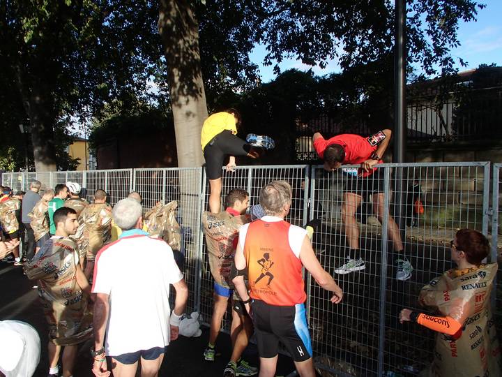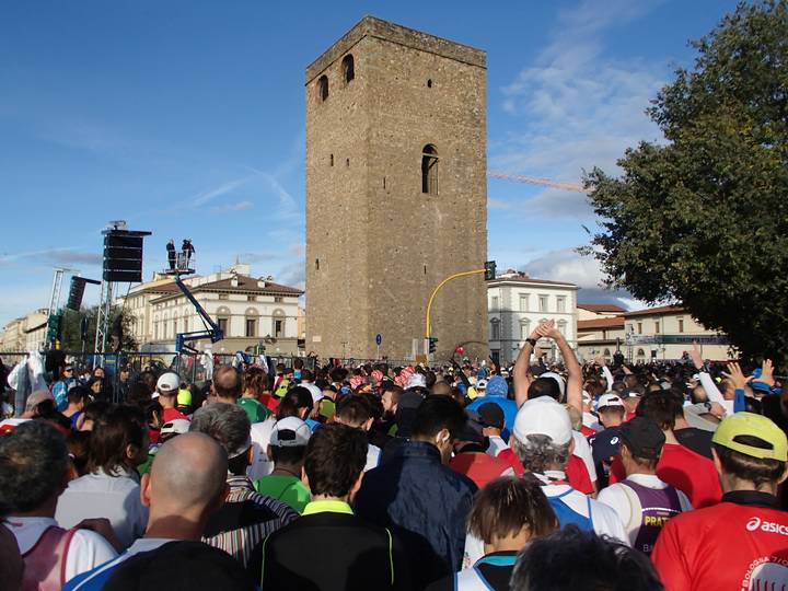 Lungarno del Tempio 8.41 Uhr Irgendwann machten sie die Tore dann doch auf. Davor herrschte weiter Gedränge, denn nun versuchten die Läufer natürlich, irgendwie zu den Toren zu kommen. |