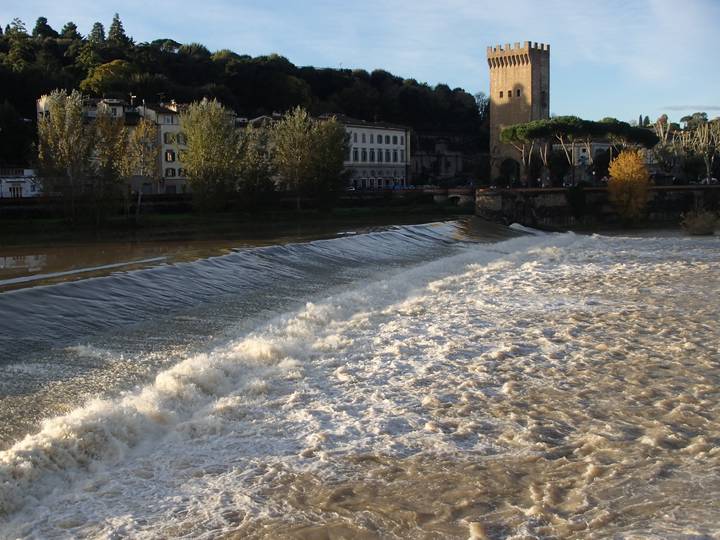 Fiume Arno / Porta San Niccolo 8.24 Uhr Blick über den Fluß auf die andere Seite. Nicht nur das Rauschen des Flusses erinnerte mich daran, daß ich dringend noch auf die Toilette mußte. |