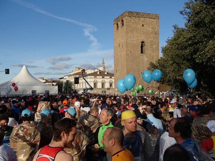 Lungarno del Tempio 8.53 Uhr Zum Start lag ich schon mal vor den 3:45-Stunden-Ballons. Das wunderte mich aber nicht, denn aus irgend welchen Gründen ließ man mich im Block 3:00 bis 3:30 Stunden starten. Das hätte mich schon noch wundern können, aber zu der Zeit war ich längst darüber hinaus, mich bei der Veranstaltung überhaupt noch über etwas zu wundern. |