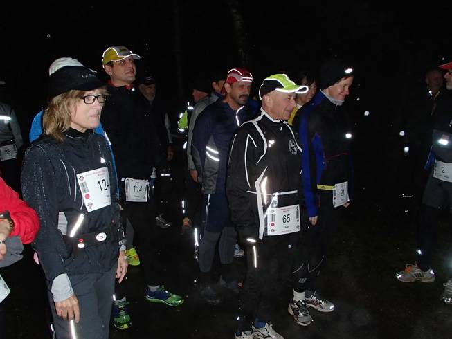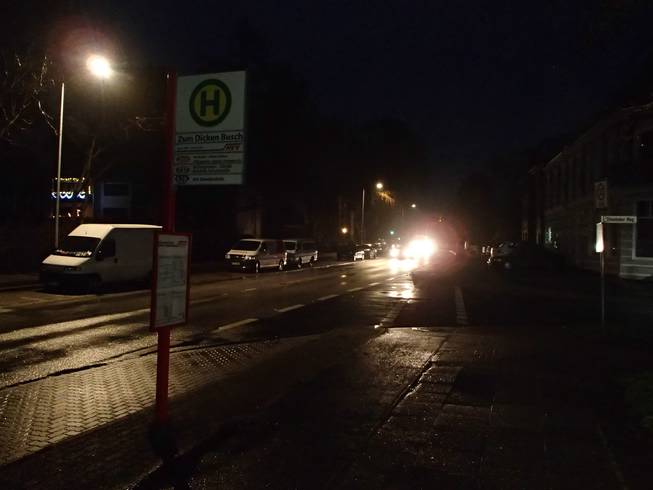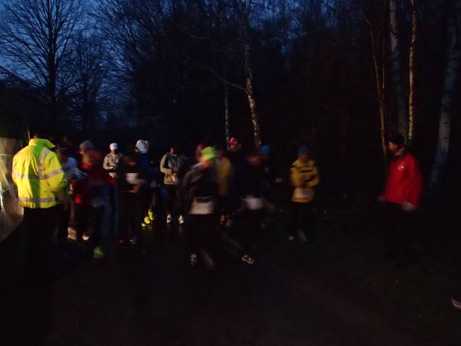 Barsbüttel 7.50 Uhr ... Zum Dicken Busch. Auch da war es immer noch dunkel. Zum Glück sammelte mich ein Mitläufer bald danach mit dem Auto auf. Auf dem unbeleuchteten Weg hätte ich es doch schwer gehabt. |