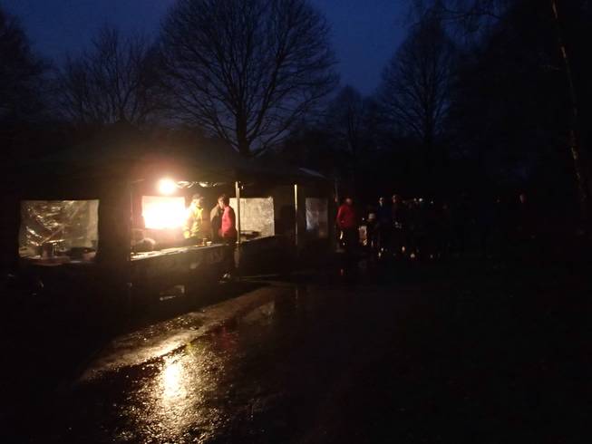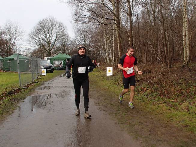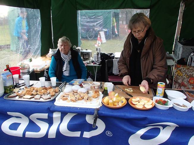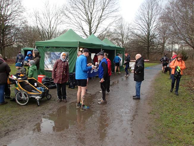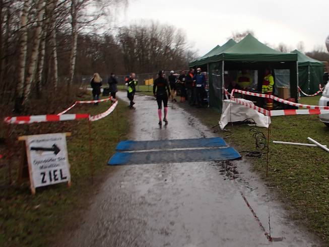 Runde 11 12.50 Uhr / Km 42,19 Und dann war es geschafft. 42,195 Kilometer Matsch und Modder. Und die Läuferin vor mir überholte ich auf dem Weg zum Verpflegungsstand. :-) |