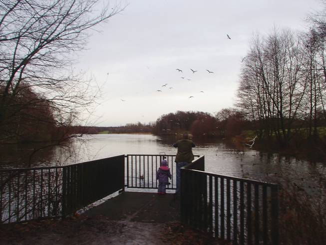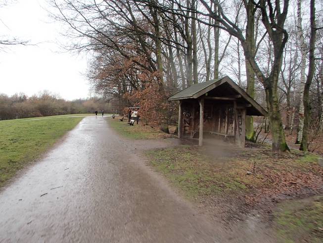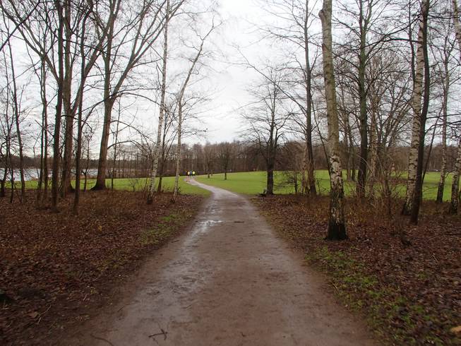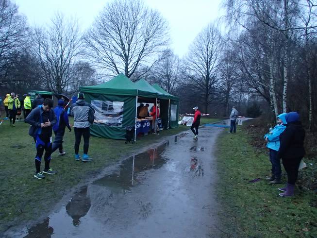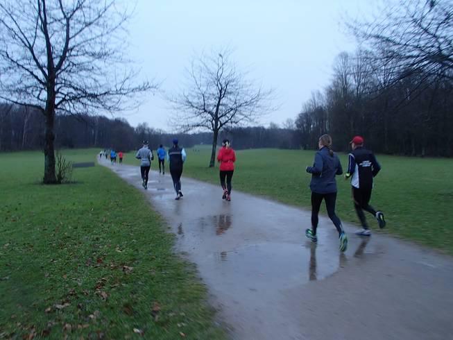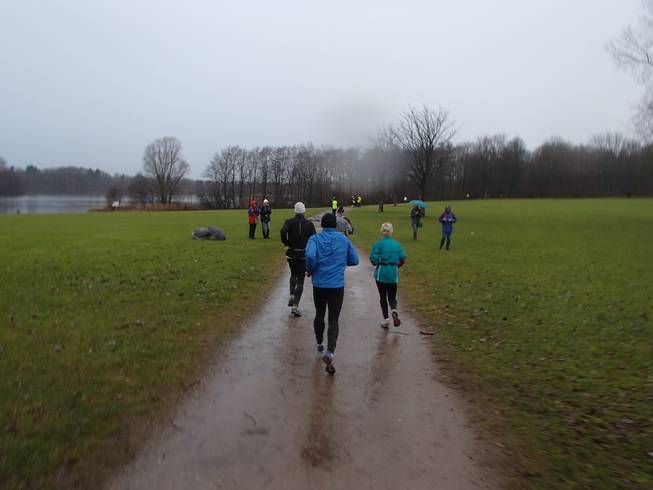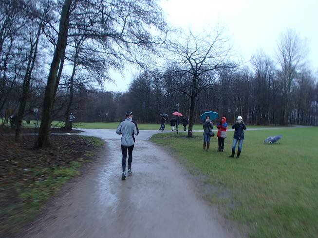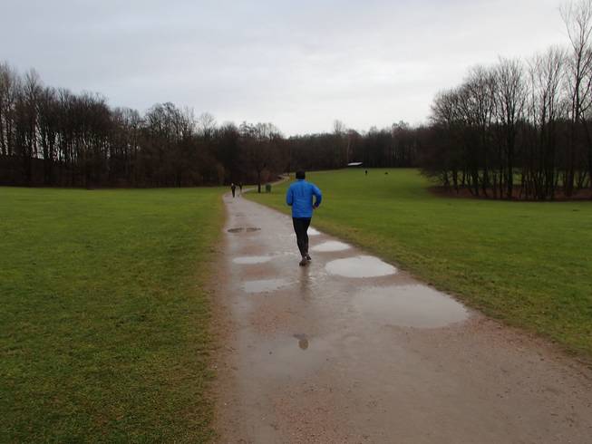 Öjendorfer Park 8.48 Uhr Im Laufe des Morgens wurde es (welch Wunder) zwar immer heller, aber keineswegs trockener. Letzteres galt vor allem für die Strecke und den Rasen daneben. |