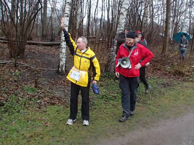 Öjendorfer Park 8.03 Uhr Bevor es aber losging, war noch genug Zeit, um das Geburtstagskind und gleichzeitig Namensgeber des Marathons Peter Wieneke hochleben zu lassen. |