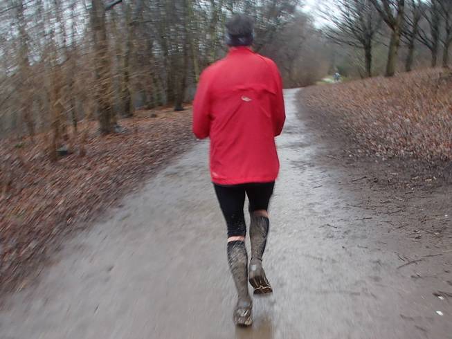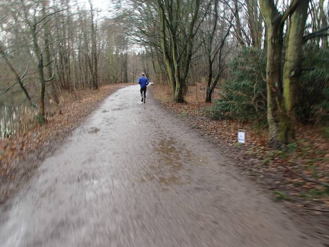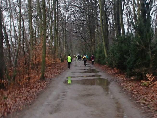 Runde 1 9.24 Uhr / Km 3,2 Immerhin war der Boden an sich fast überall noch fest und gut zu laufen. Der Regen hatte sich zumindest zwischenzeitlich vermindert. Und mit 7°C war es für Ende Dezember recht warm. Wenn gleich es doch sieben Grad kühler war als noch zu Weihnachten. :-) |