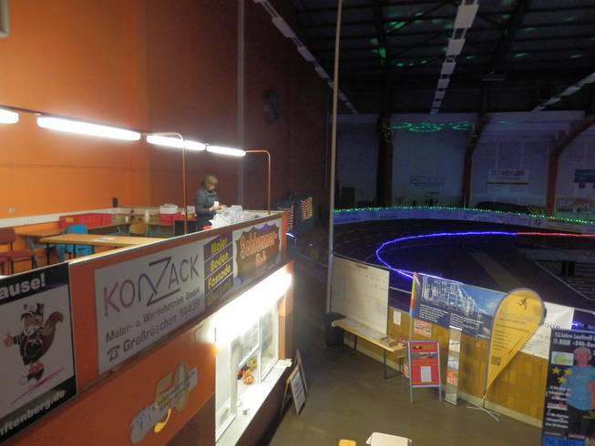 Niederlausitzhalle Senftenberg Von außen betrachtet sieht die Steilkurve gar nicht so schlimm aus. Aber mein Knöchel und meine Hüfte erzählten mir da etwas ganz anderes. Die ganze Nacht noch... |