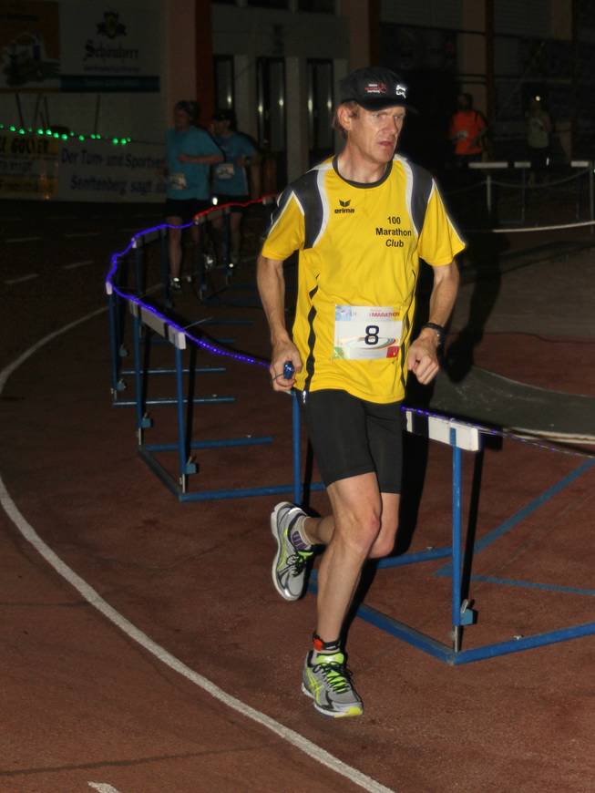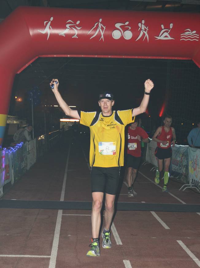 Runde 169 21.39 Uhr / Km 42,25 Geschafft. Und wie! Mit 3:38:21 Stunden blieb ich im ersten Marathon des Jahres 2014 gleich 4:36 Minuten unter meiner Bestzeit des Jahres 2013. Was für ein Steigerungslauf das war. Von Platz 25 bei Km 5 auf Platz 8 im Ziel. Der zweitschnellster Läufer auf der zweiten Marathon-Hälfte, Platz 3 auf den letzten 2,25 Km. Im Sektoren-Vergleich des Tempo auf Km 30 bis 40 und ab Km 40 wurden 18 vom 45 Läufern schneller. Da gehörte ich nicht mehr dazu, büßte 3,9% Tempo ein. Immer schön gegen den Trend... :-) Andererseits wurde der Führende bei Km 10 am Ende nur 22. Der bei Km 10 auf Platz 4 liegende Läufer wurde 34. Und Thomas Wehner kämpfte sich von Platz 35 (Km 10) auf Platz 23 fast ebenso viele Plätze wie ich vor. Foto: |