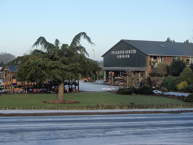 Sibirien 9.27 Uhr Sibirien ist der Name des kleinen Sees und des Parks drum herum. Sowie der dort ansässiges Gaststätte. Aber das angrenzende Pflanzen-Center heißt auch so. |