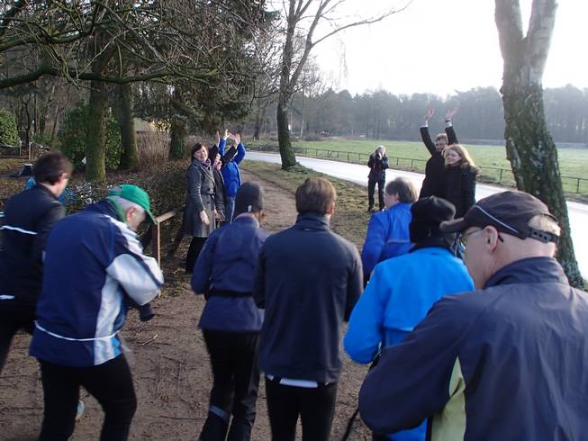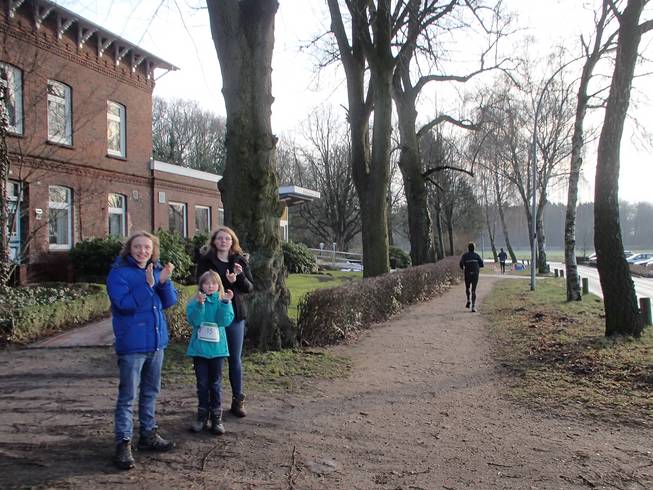 Runde 2 10.07 Uhr / Km 1,4 In den ersten Runden hatten wir noch eine kleine Fangruppe am Rand stehen. |