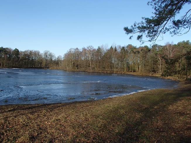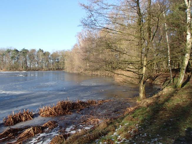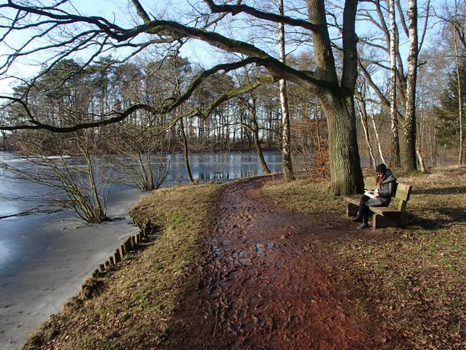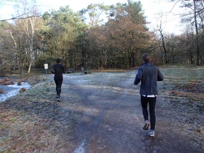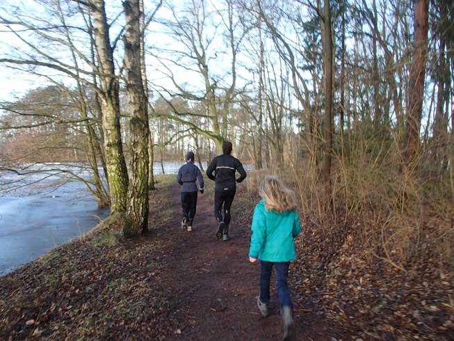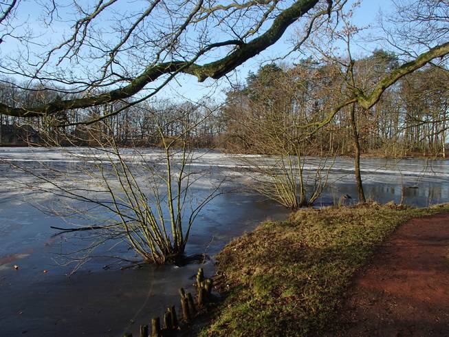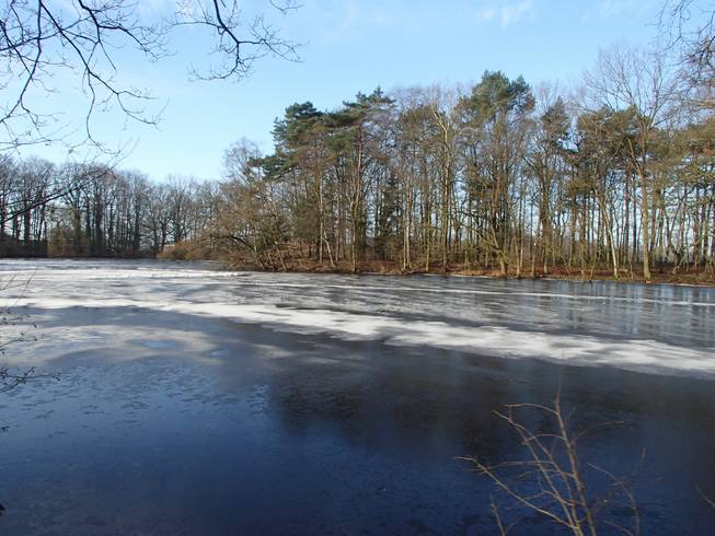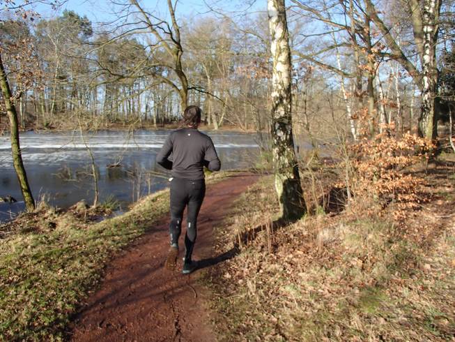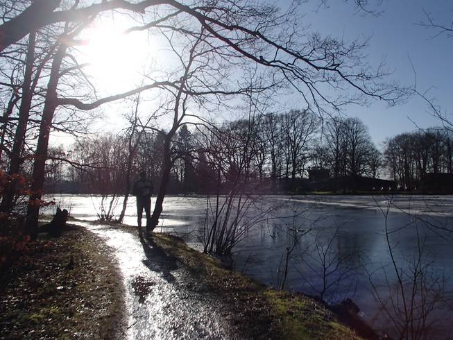 Runde 7 10.28 Uhr / Km 4,7 Die Runde um den See war traumhaft schön. Der See war noch zugefroren und die Sonne strahlte. Die Wege waren prima zu laufen, zwar gefroren, aber nicht glatt. |