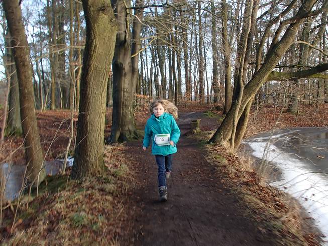 Runde 1 10.03 Uhr / Km 0,6 Auf dem schmalen Steg, der einen kleinen Teil des Sees abtrennte, überholte ich dann die Kleine und zog auf Platz Drei vor. |