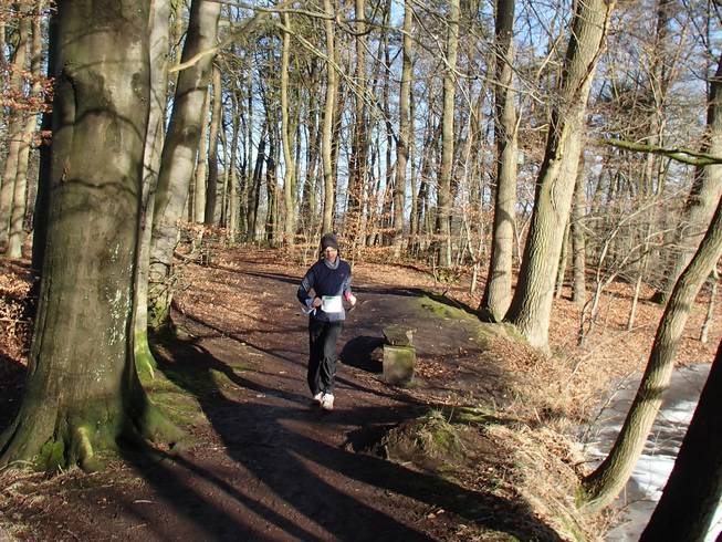 Runde 57 13.41 Uhr / Km 40,7 Da komme ich durch den Wald angelaufen. Nur noch knapp mehr als zweieinhalb Runden zu laufen. (Foto: Christian) |