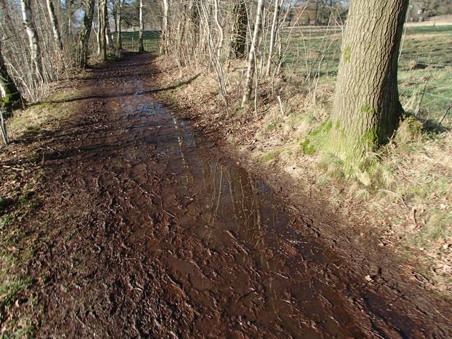 Runde 41 12.37 Uhr / Km 29,4 Auch anderen Stellen des Kurses wurde der Weg immer schlammiger und man mußte sich immer wieder neue Wege suchen. Es war ja nicht nur naß und tief, sondern auch rutschig. |