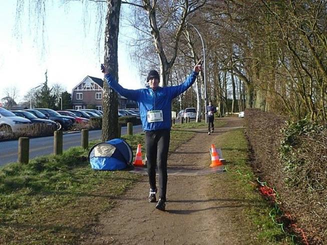 Runde 59 13.51 Uhr / Km 42,704 Platz 1 in 3:51:04 Stunden. Eine tolle Zeit. Wären es nur 42,195 Kilometer gewesen, wäre ich bei 3:48 Stunden herausgekommen. Aber egal. Platz 2 und 3 gingen dann an Tammo und Frank. (Foto: Christian) |