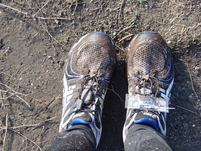 Runde 39 12.25 Uhr / Km 27,7 Die Schattenseite des guten Wetters: langsam aber sicher taute der Weg auf und wurde von Runde zu Runde immer matschiger. Noch konnte man auf der Außenbahn trocken im die Kurve kommen, aber sehr lange klappte das nicht. |