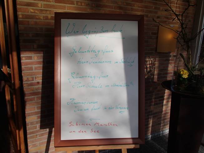 Sibirien 15.27 Uhr Die Gastfreundschaft, die man uns hier entgegen brachte, war sensationell. Das hatte ich bei meinen 108 Marathons zuvor nicht erlebt. Ein ganz herzliches Danke an die Familie Thormählen. |