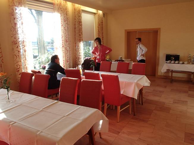 Sibirien 9.57 Uhr Die Familie Thormählen, Eigentümer der Gaststätte, war zum Start sehr zahlreich angetreten. Dabei hatten sie mit der Veranstaltung nur insofern etwas zu tun, als daß sie die Nutzung ihres Parks freigaben. Dies und die Erlaubnis, die Gaststätten-Toiletten nutzen zu dürfen, war aber nur der Anfang. Aber dazu später mehr. |