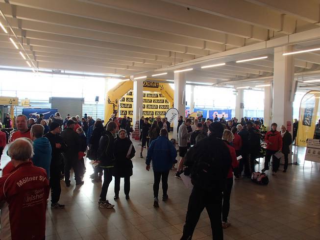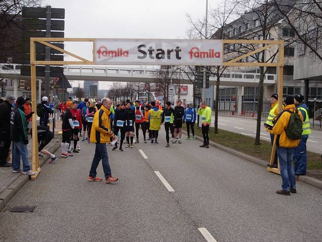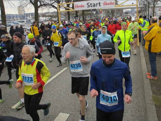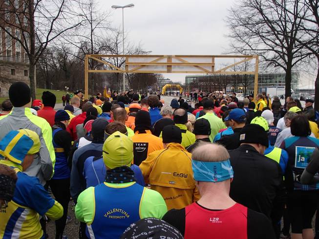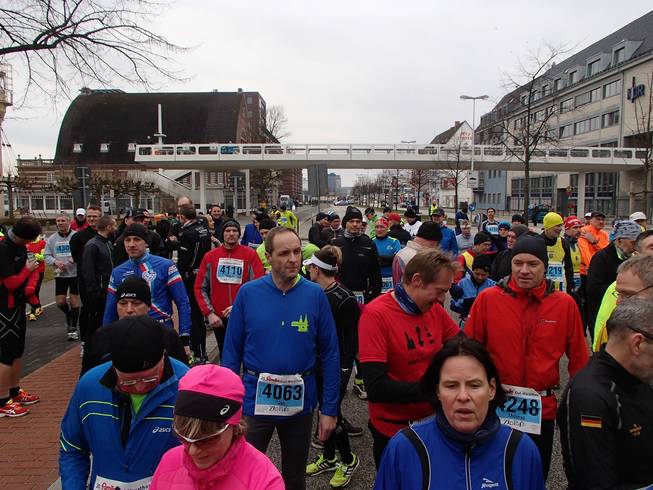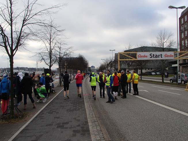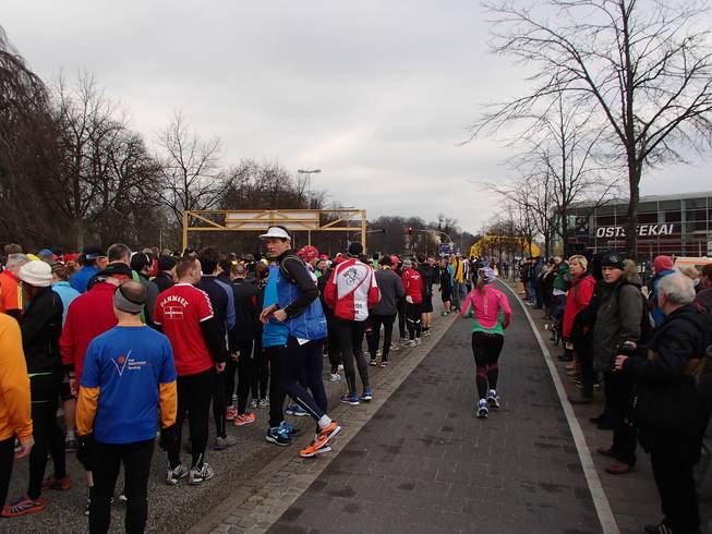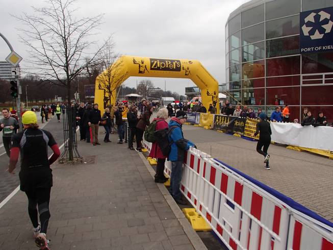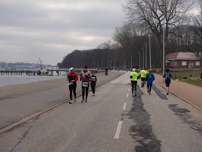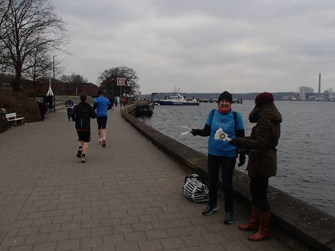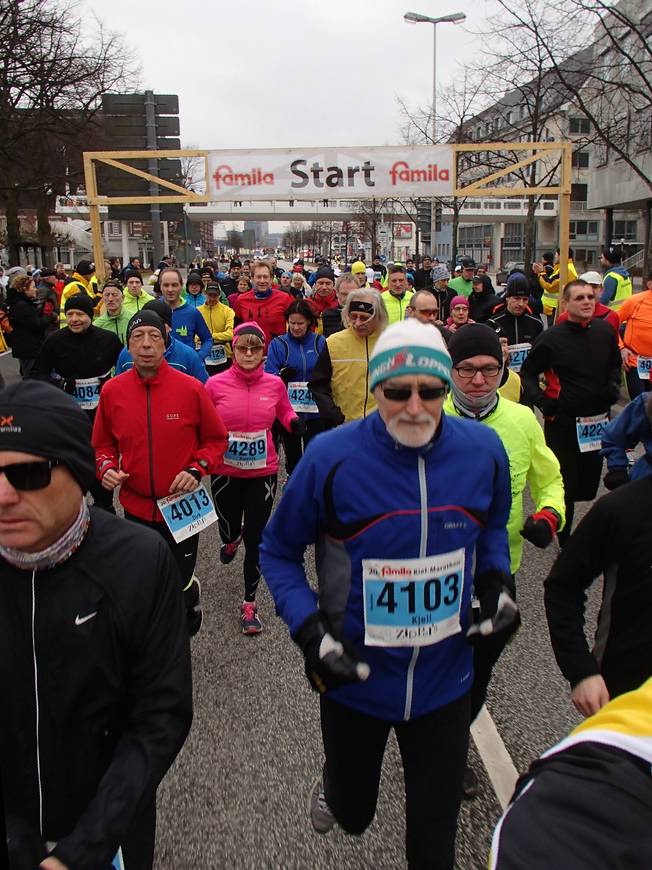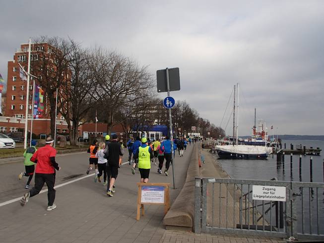 Wall 10.18 Uhr 233 Läufer. Das war fast so viele wie im Vorjahr. Der Kiel-Marathon ist halt sehr beliebt. Im Februar ist die Lauf-Konkurrenz ja auch nicht so groß. |