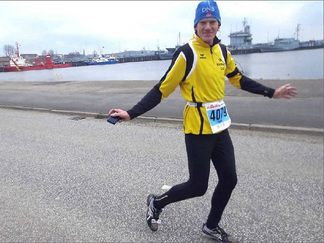 Kiellinie / Runde 3 12.49 Uhr / Km 28,7 Mit diesem Halbmarathon-Läufer (links) lieferte ich mir ein längeres Duell. Nach einer Weile hatte ich ihn dann aber abgehängt. |