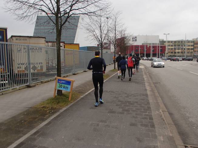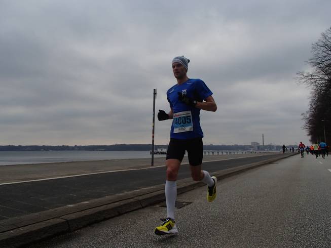Hindenburgufer / Runde 4 13.11 Uhr / Km 33,4 Die zweite Hälfte schneller zu laufen kenne ich zwar schon, aber dieses Tempo war selbst mir unheimlich. |