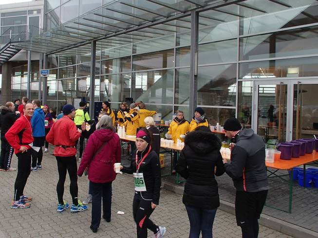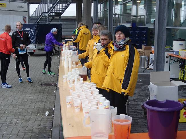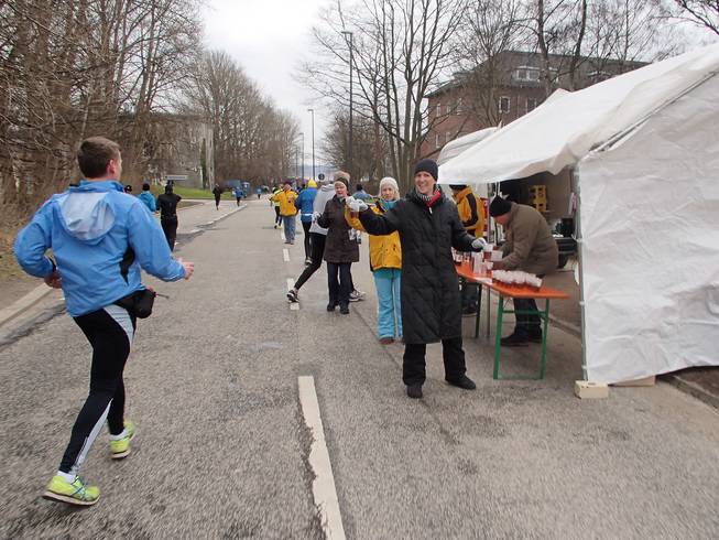 Hindenburgufer / Runde 3 12.33 Uhr / Km 25,5 Hier der nördliche Stand mit Verpflegung. Immer schön Vorsicht beim Tee. Der ist manchmal recht heiß. |