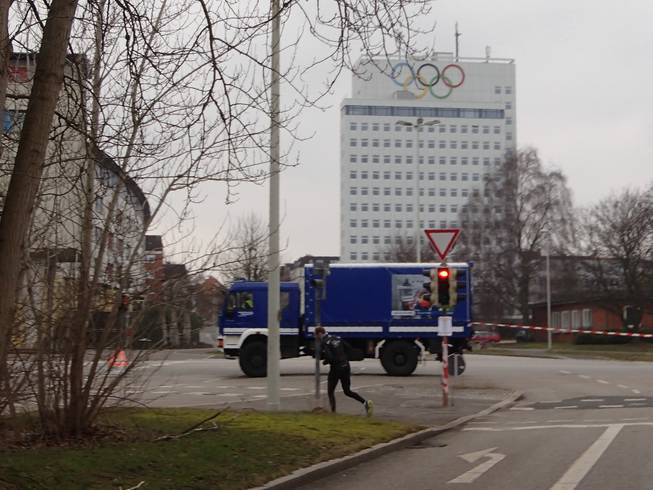Hindenburgufer / Runde 4 13.23 Uhr / Km 36,0 Zum letzten Mal ging es um die Nordwende. Zur Zeit der Olympischen Winterspiele von Sotschi 2014 (07. bis 23. Februar 2014) glänzten die Olympischen Ringe noch motivierender. |