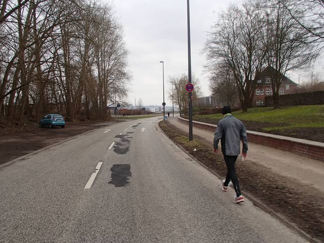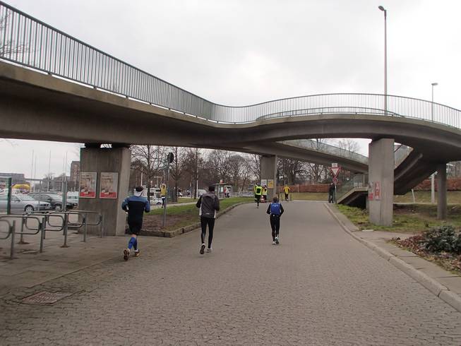 Hindenburgufer / Runde 1 10.42 Uhr / Km 4,0 Zum ersten Mal ging es in die nördliche Schleife. Bei vier Pendel-Runden läuft man die Strecke achtmal ab. Viermal nach Norden, viermal nach Süden. |