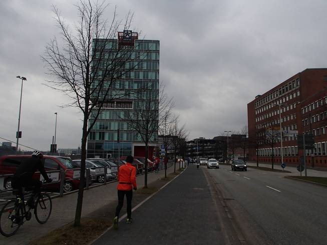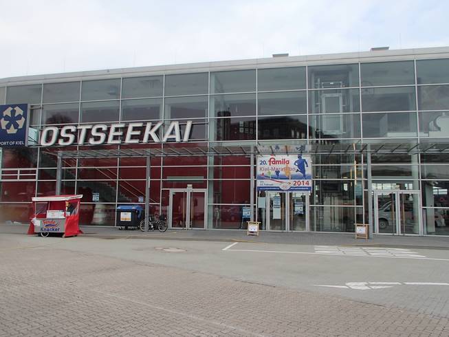 Ostseekai 14.58 Uhr Nun kam noch der immer wieder schwerste Teil des Kiel-Marathons: Der Weg zurück zum Bahnhof. Das sind zwar nur um die 1,5 Kilometer, aber nach dem Marathon und gegen den Wind ist das schon sehr brutal. |