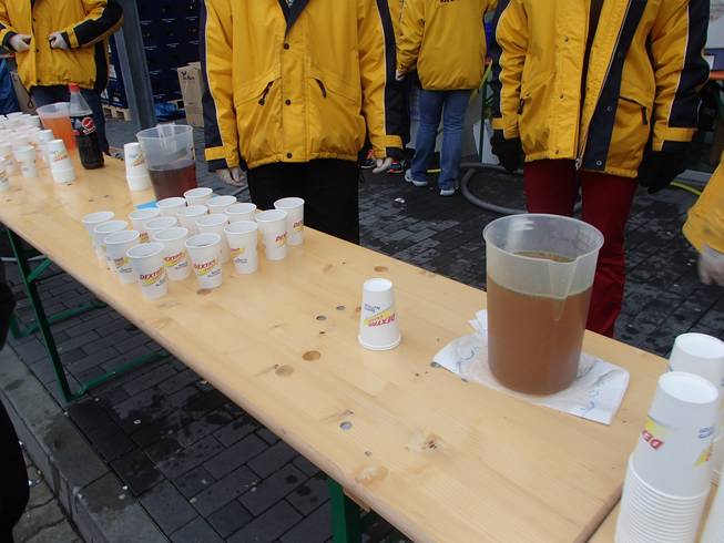 Ostseekai 13.57 Uhr Immer wieder gerne nehme ich auch einen Becher mit Brühe. Auch wenn die wie jedes Mal sehr heiß war und sich in dem dünnen Becher entsprechend schwierig transportieren ließ. |