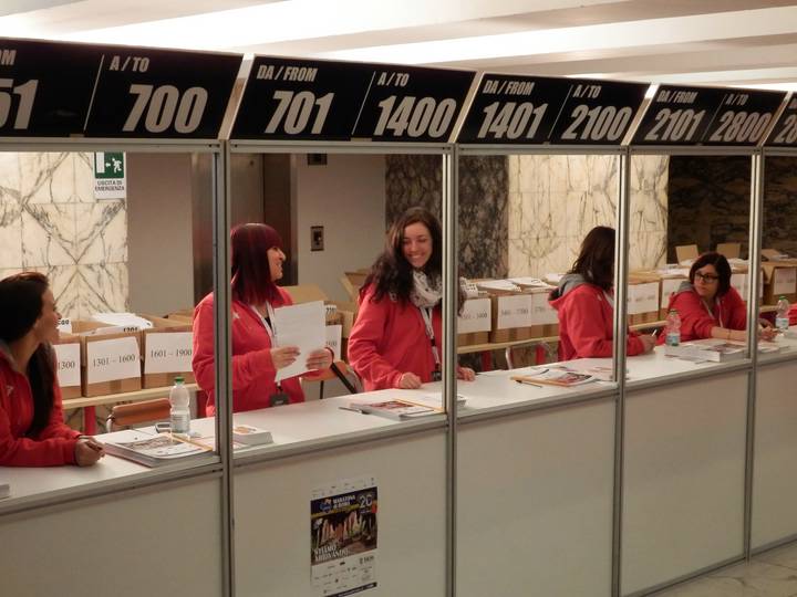 Palazzo dei Congressi Von einem großem Ansturm auf die Startnummern war nichts zu sehen. Freitag und Samstag war ja auch noch offen. |