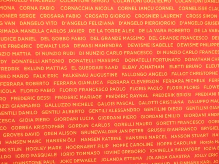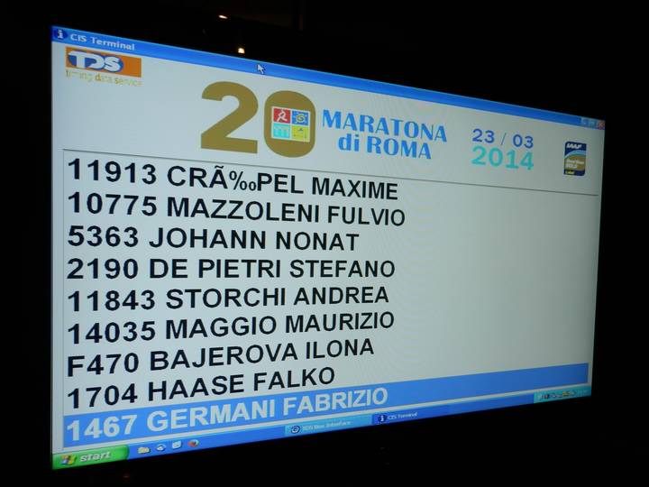 Palazzo dei Congressi Auf einer riesigen Poster-Wand waren alle Läufer aufgelistet. |