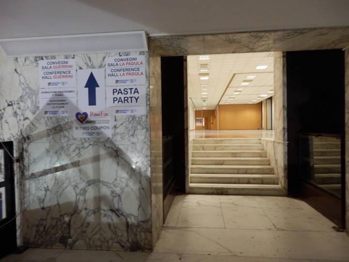 Palazzo dei Congressi 18.54 Uhr Tun wir mal so als hätte irgendwo etwas von "nur am Samstag" gestanden. Die italienische Version der Veranstaltungs-Homepage ist deutlich ausführlicher als die englische oder gar die deutsche Fassung. Ob das allerdings auch alles wichtig gewesen wäre sei mal dahin gestellt. Außer der Pasta-Party habe ich jedenfalls nicht verpaßt. Glaube ich... |