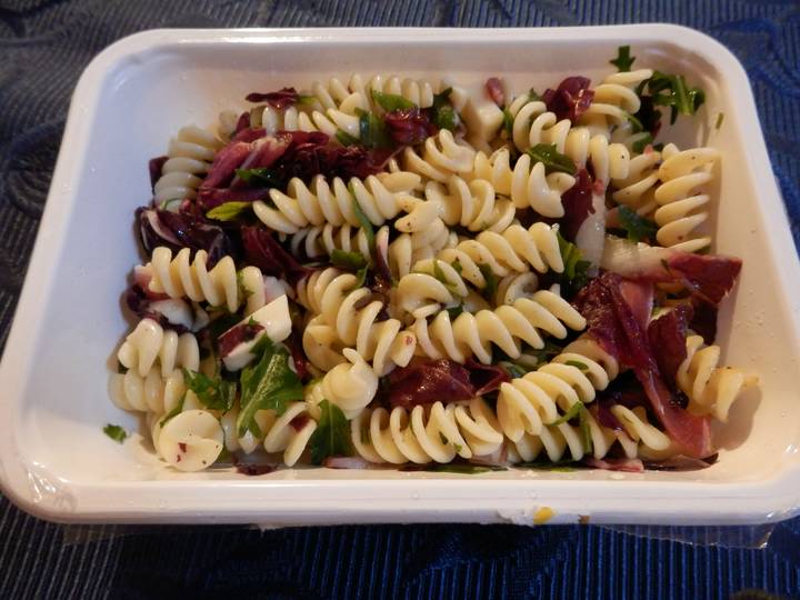 Stazione di Roma Termini 16.56 Uhr Der Weg zur offiziellen Pasta-Party war mir dann doch zu weit. Also holte ich mir meine Pasta beim DESPAR-express im Bahnhof. Der Laden war während meines ganzen Aufenthaltes meine Verpflegungsstelle. Und die Preise waren sogar noch fast akzeptabel. |