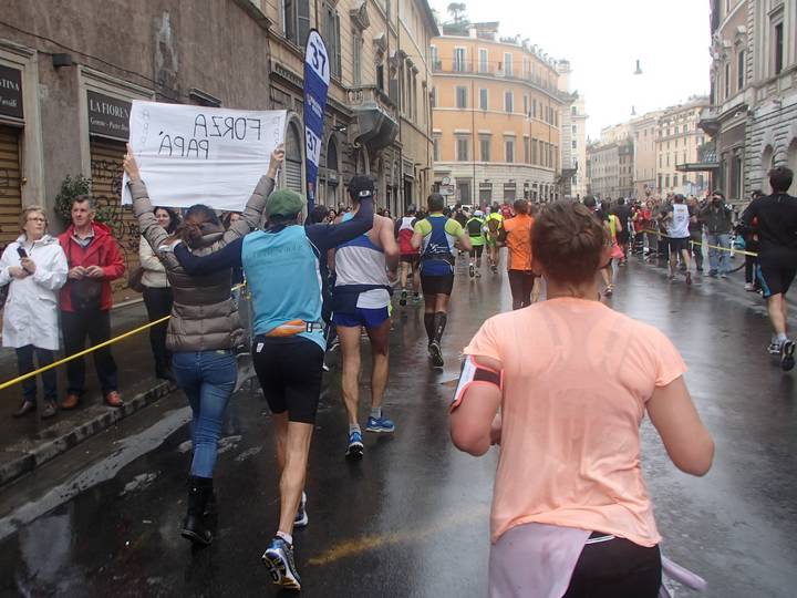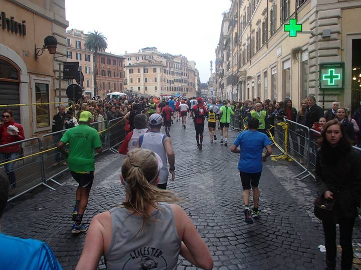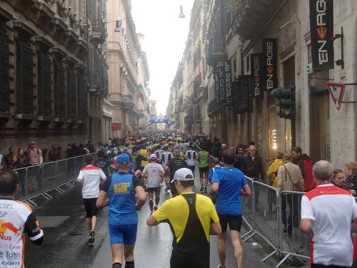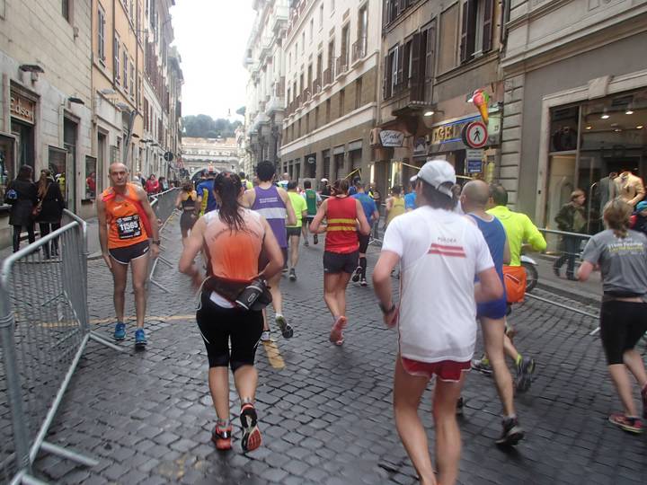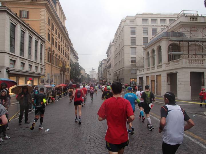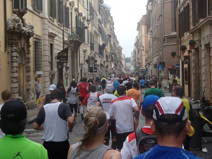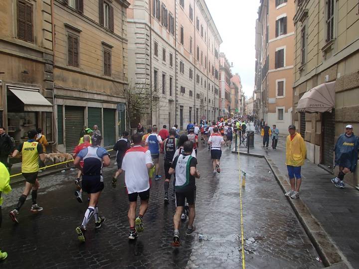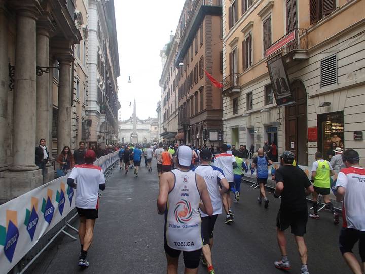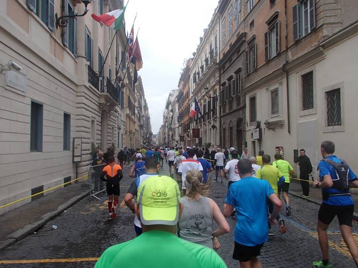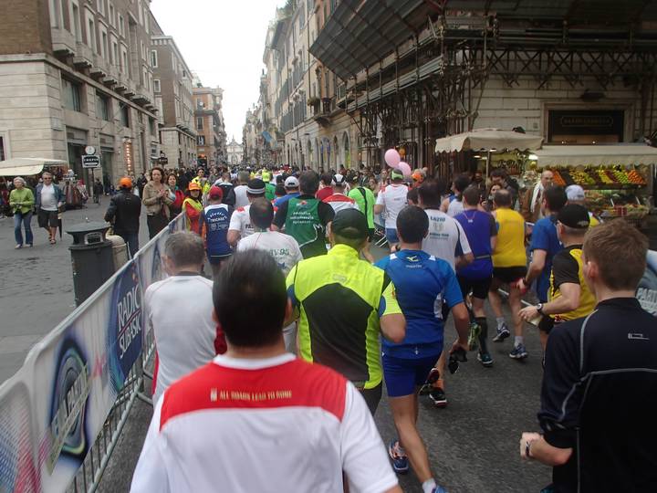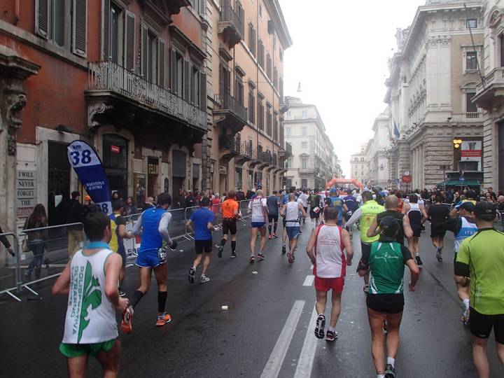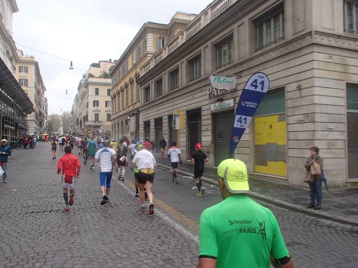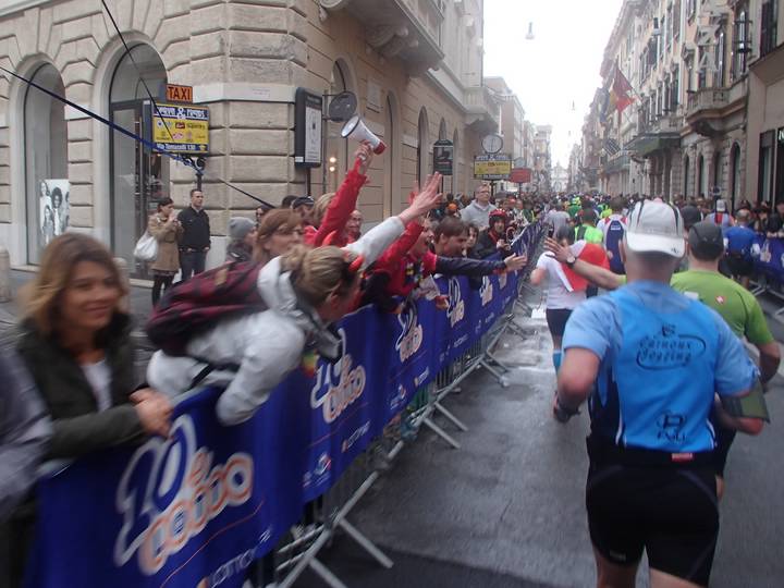 Via dei Corso 12.34 Uhr / Km 38,4 Am Marathon-Tag von Rom machte ich 1036 Fotos. Das ließ die alte Bestmarke von New York 2009 von nur 890 Fotos weit hinter sich. 840 Fotos davon machte ich während des Laufes (New York 699 Fotos). |