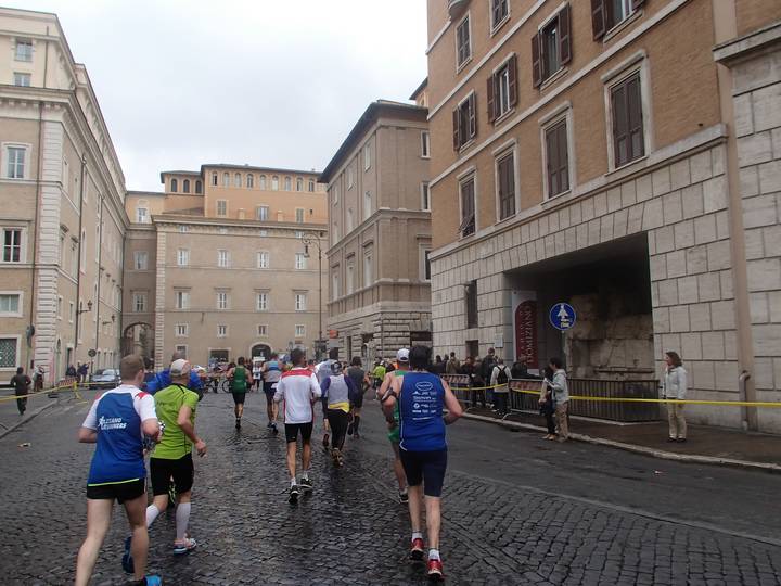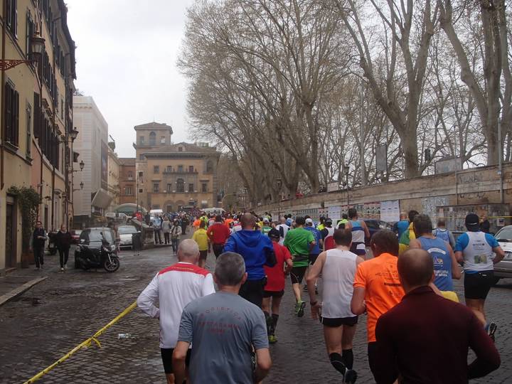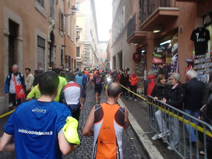 Via di Monte Brianzo 12.20 Uhr / Km 35,9 Irgendwie wurde es auf der Strecke plötzlich wieder eng. Wo kamen bloß all die Läufer her? Oder wurden einfach nur die Straßen enger? |
