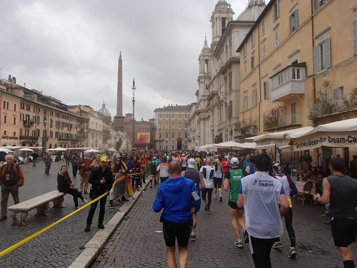 Piazza Navona / Chiesa di Sant'Agnese in Agone / Obelisco Agonale 12.25 Uhr / Km 36,7 Ist schon erstaunlich, daß man es geschafft hat, die Strecke so schön frei zu halten. |