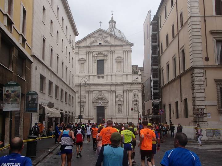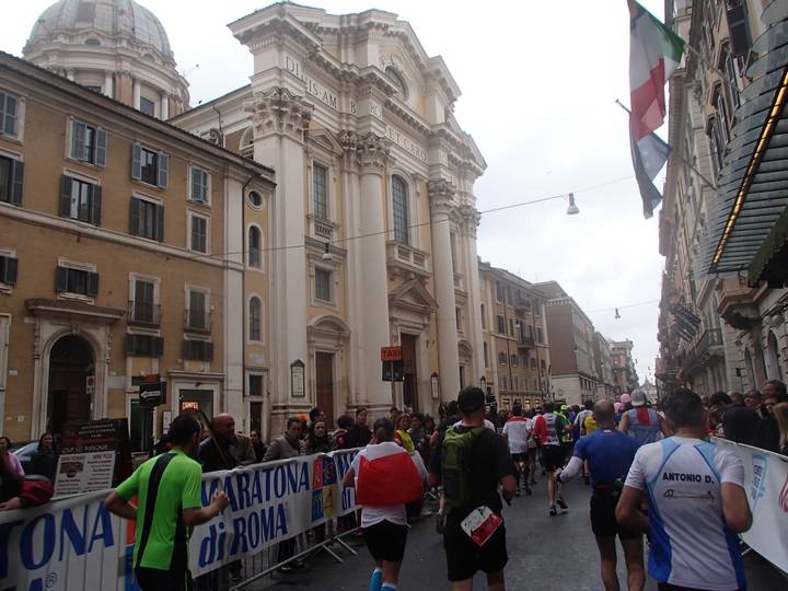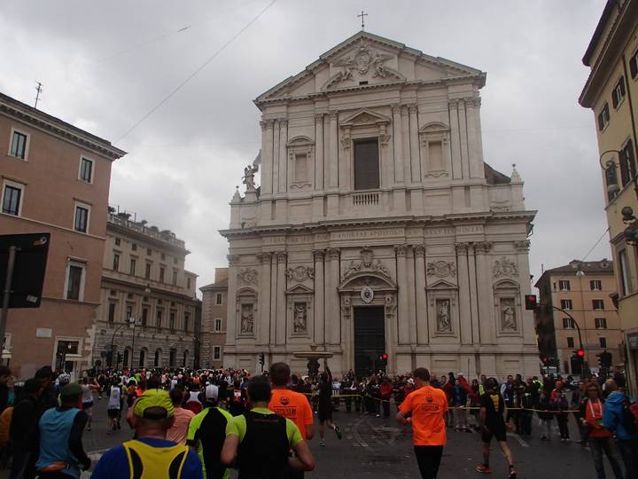 Piazza di Sant'Andrea della Valle / Basilica di Sant'Andrea della Valle 12.26 Uhr / Km 36,9 Bei Marathon-Kilometer 37 denkt man aber auch nicht mehr so mit. Da läuft man einfach nur der Masse nach. |