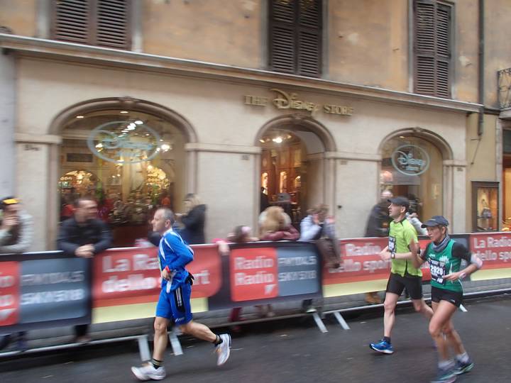 Via dei Corso 12.33 Uhr / Km 38,2 Rechts uns links zum Teil recht exklusive Läden. Und mitten drin wir Läufer. Wir kommen überall hin. |