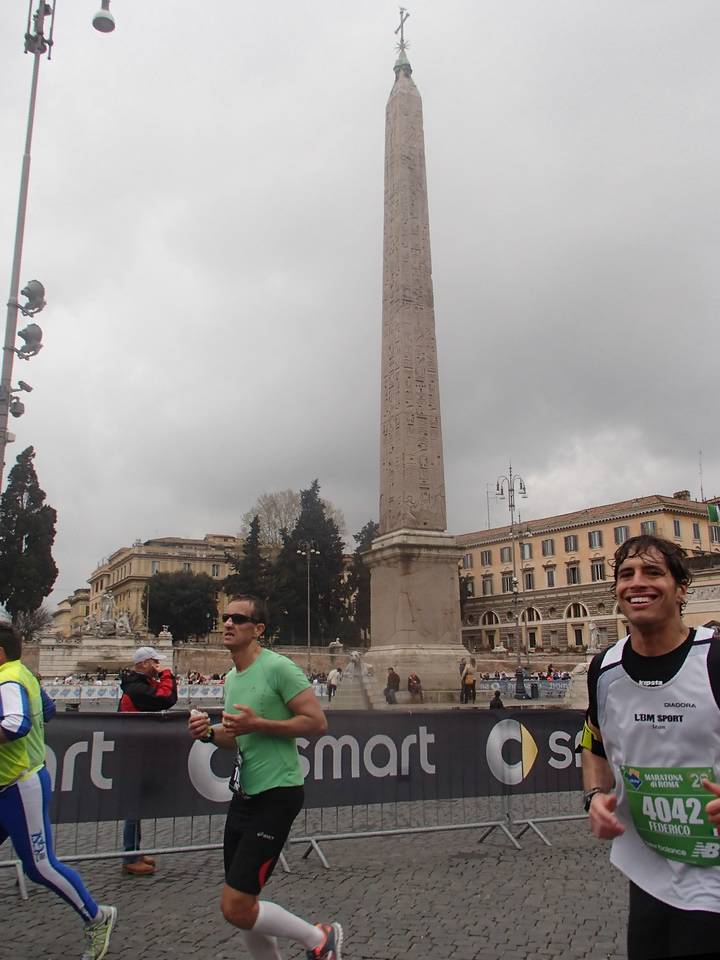 Piazza del Popolo / L'Obelisco Flaminio / Basilica Parrocchiale Santa Maria del Popolo 12.38 Uhr / Km 39,2 Und der nächste schöne Platz, den es zu überlaufen galt. |