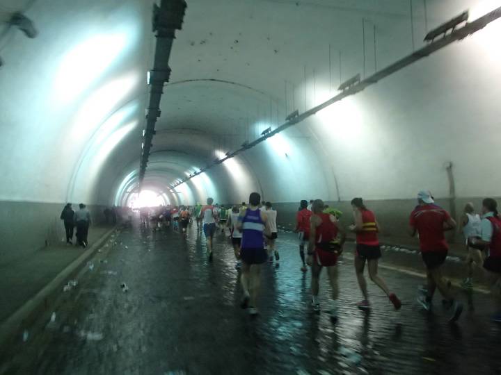 Via del Traforo 12.45 Uhr / Km 40,6 Richtung Tunnel, Richtung Ziel. Einige finden schon an zu Jubeln oder zumindest zu fliegen. Vor allem ersteres mache ich sonst auch gerne, aber an jenem Tag fehlte mir etwas die Kraft dafür. |