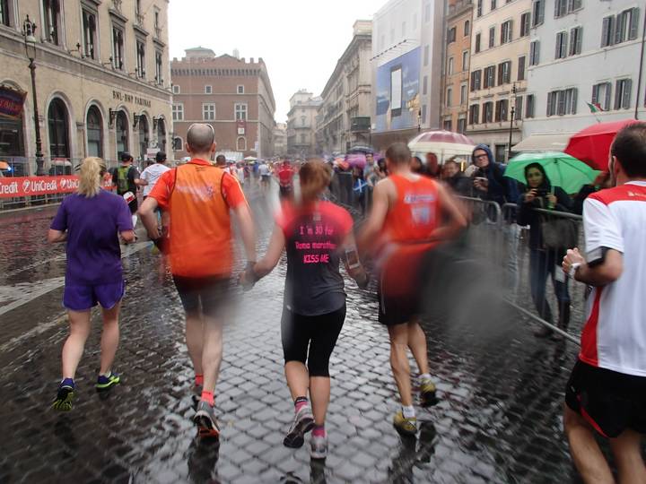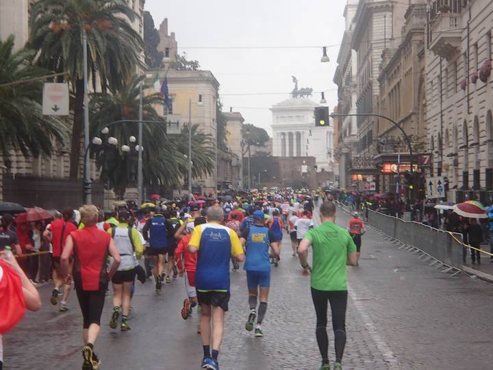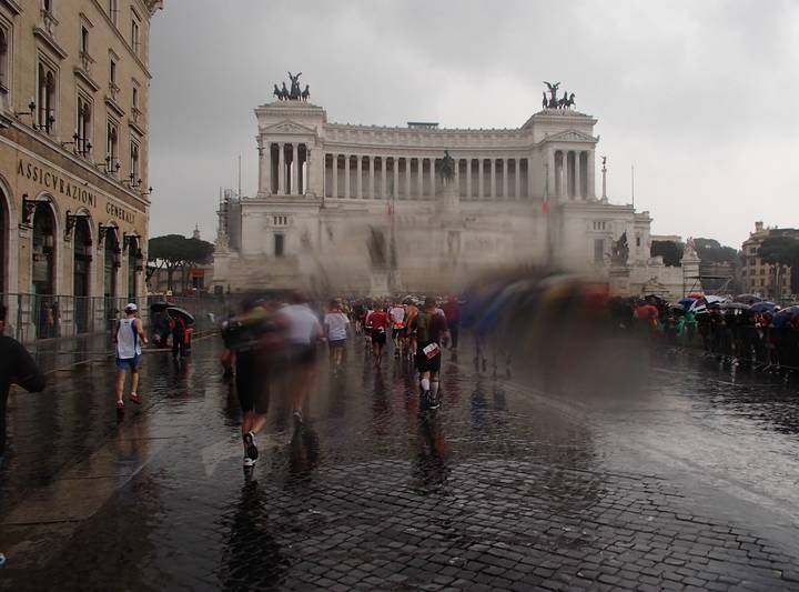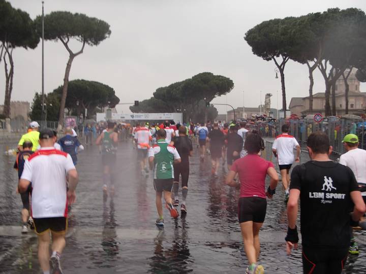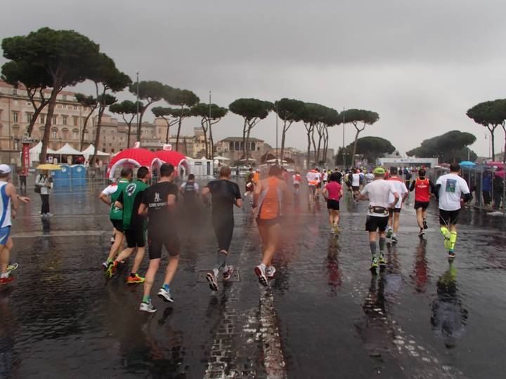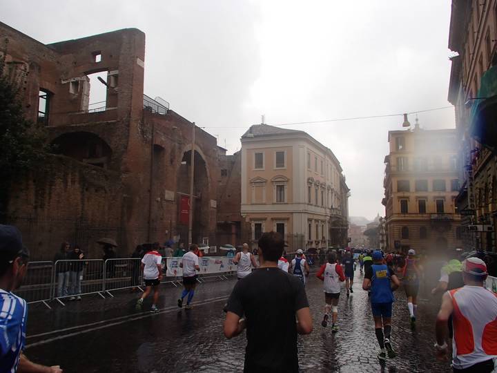 Via dei Fori Imperiali / Fori Imperiali 12.55 Uhr / Km 42,19 Und dann ging der Lauf durch Rom zu Ende. Nach viel visuellem Spektakel am Ende der Regen. Nichts ist perfekt. Auch die ewige Stadt nicht. |