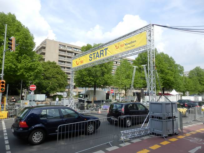Friedrichswall 15.10 Uhr Am Tag vor dem Marathon war der Startbereich noch für Autos geöffnet. Ich bin nie mit einem Auto durch einen Marathon-Start gefahren... |