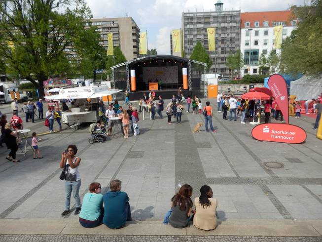 Trammplatz 15.13 Uhr Ich kam zu der Zeit der Kinderläufe. Entsprechend voll war es auf dem Gelände. |