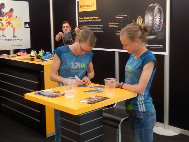 Trammplatz 15.33 Uhr Anna und Lisa Hahner. Anna hatte zwei Wochen zuvor den Wien-Marathon gewonnen, Lisa würde am Folgetag hier in Hannover mitlaufen. |