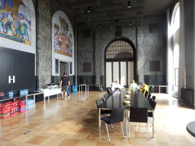 Neues Rathaus 15.44 Uhr Der Mosaiksaal war für uns reserviert. Dazu gab es reichlich Getränke und eine eigene Pasta-Party. |