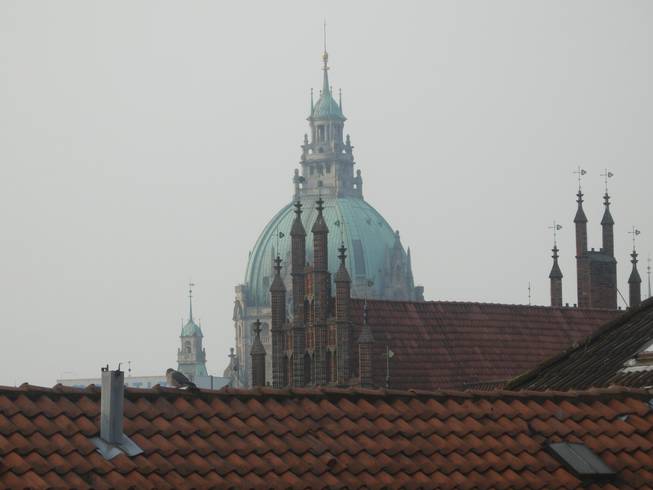 Seilwinderstraße 7.49 Uhr Von meiner Unterkunft aus konnte ich den Turm des Neuen Rathauses sehen. |