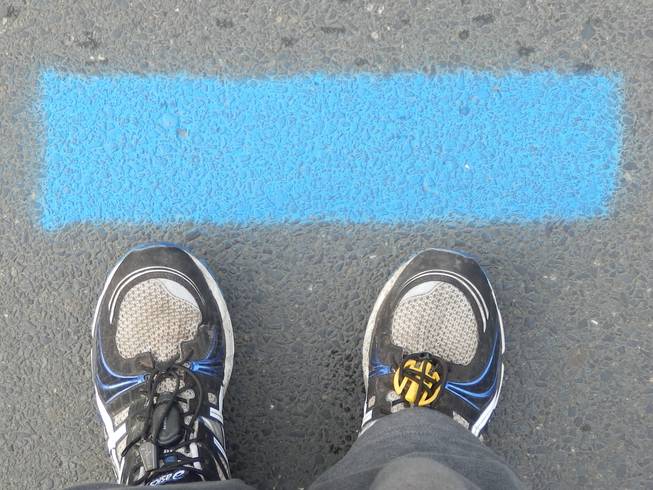 Friedrichswall 8.00 Uhr Gehören doch irgendwie zu einem Marathon dazu: Blaue Striche! |