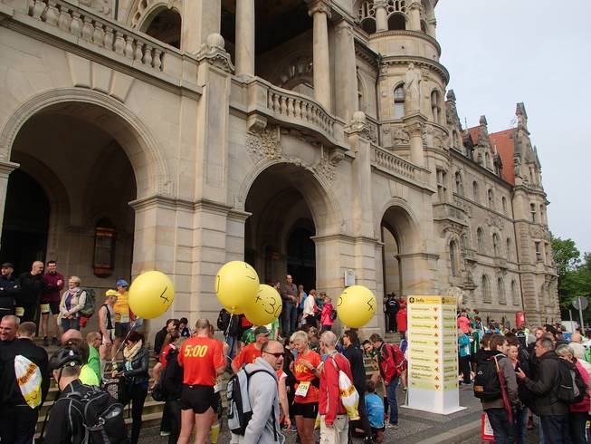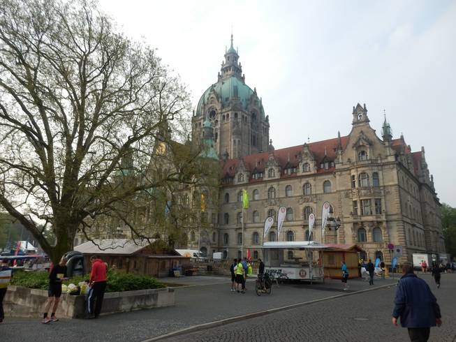 Neues Rathaus 8.08 Uhr Ich hatte mit ohnehin vorgenommen, entweder in Hannover oder eine Woche später in Hamburg einmal wieder unter 3:30 Stunden zu laufen. Warum also nicht gleich in Hannover? |