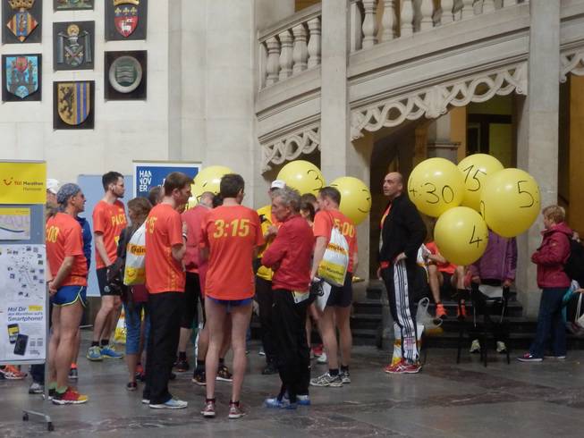 Friedrichswall 8.58 Uhr In Hannover gibt es Pace-Maker von 3:00 bis 5:00 Stunden für jede 15 Minuten. Damit ist man besser aufgestellt als in Hamburg, wo es bei fast zehnfacher Feldgröße nur Pace-Maker im Abstand von jeweils 30 Minuten gibt. |