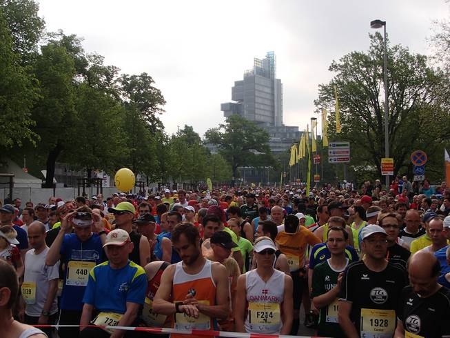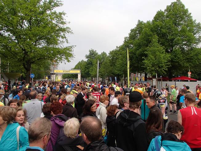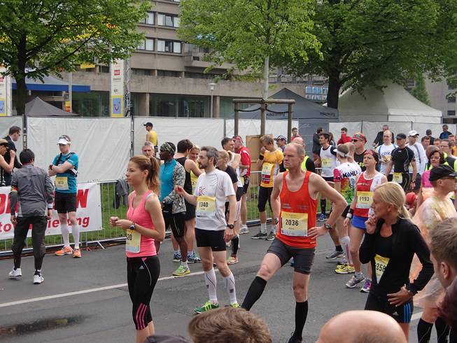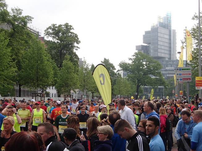 Friedrichswall 8.52 Uhr Hier versammelten sich 1721 Marathonläufer. Also weniger als 10% der Gesamtläufer. Trotzdem war es dieser Lauf, der Live im Fernsehen übertragen wurde. Dazu gesellten sich 303 Startläufer von Staffeln. |