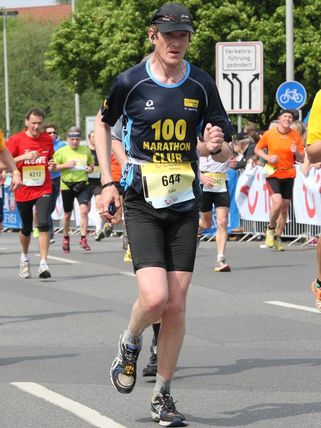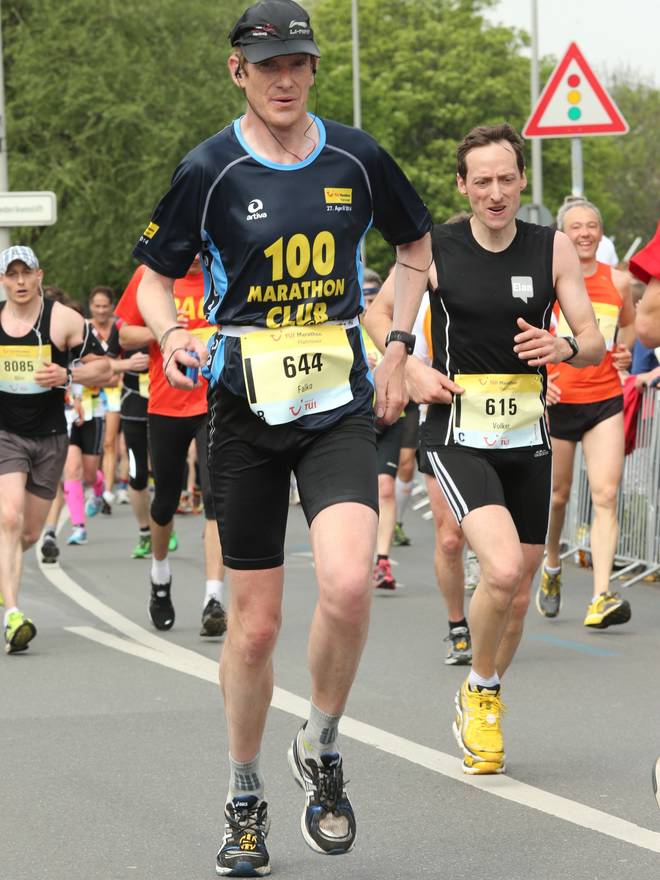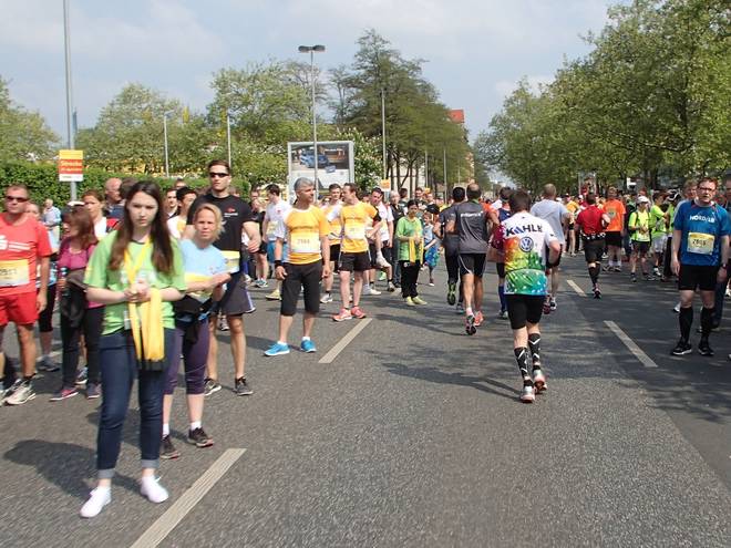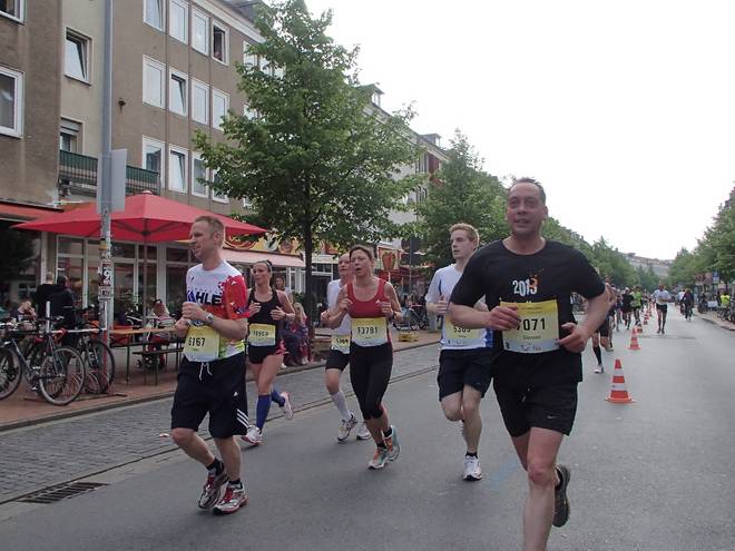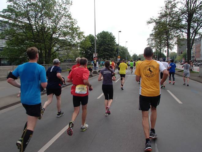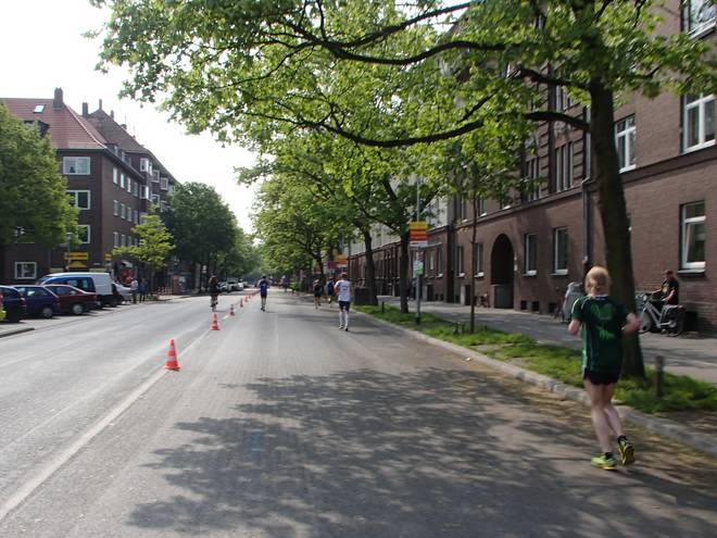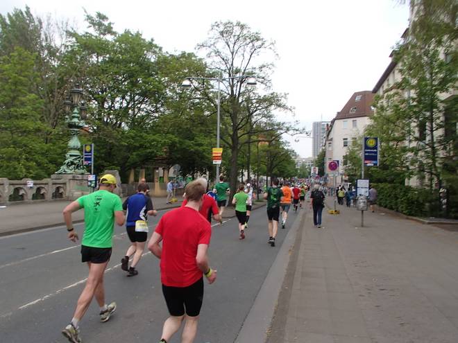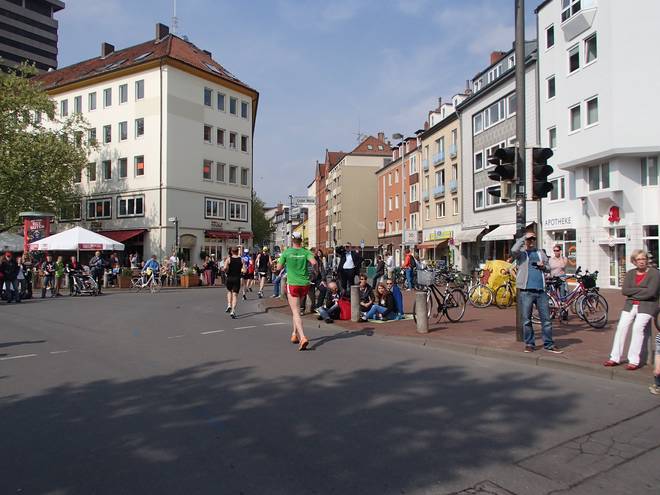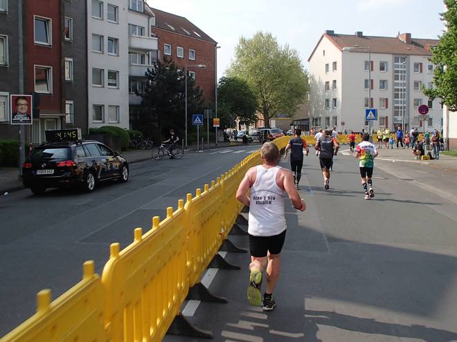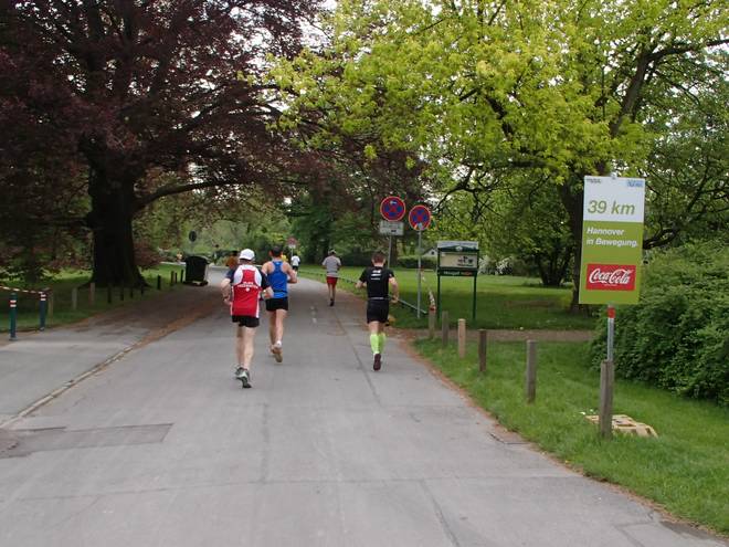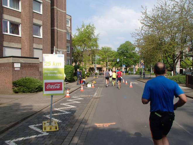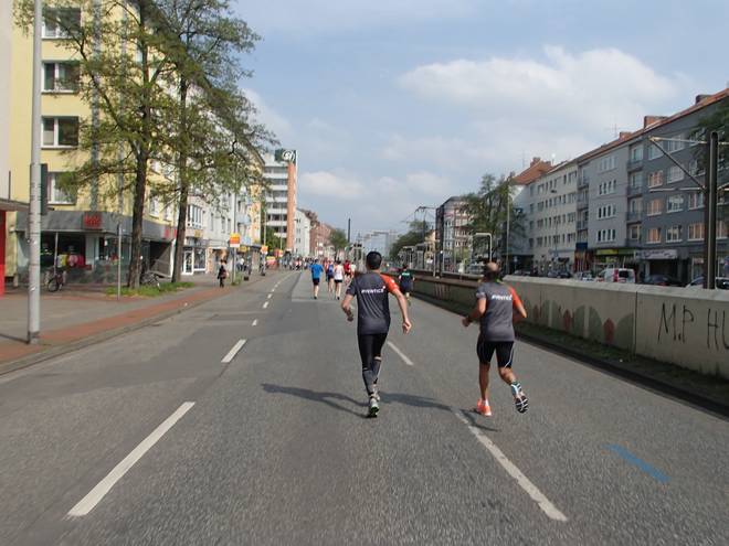 Vahrenwalder Straße 11.20 Uhr / Km 28,5 Die Anzahl der direkten Mitläufer nahm auch immer mehr ab. Nun wurde der Weg von einem Überholen zum nächsten auch immer weiter. |